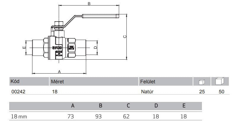 Az Arco Tajo 2000 (PN50) sorozata golyós elzárócsapok. Az egyes alkotóelemeknek és kialakításnak