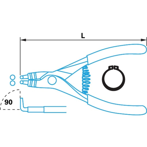 | Szabvány | biztosítógyűrű fogó hajlított pofával külső gyűrűkhöz |