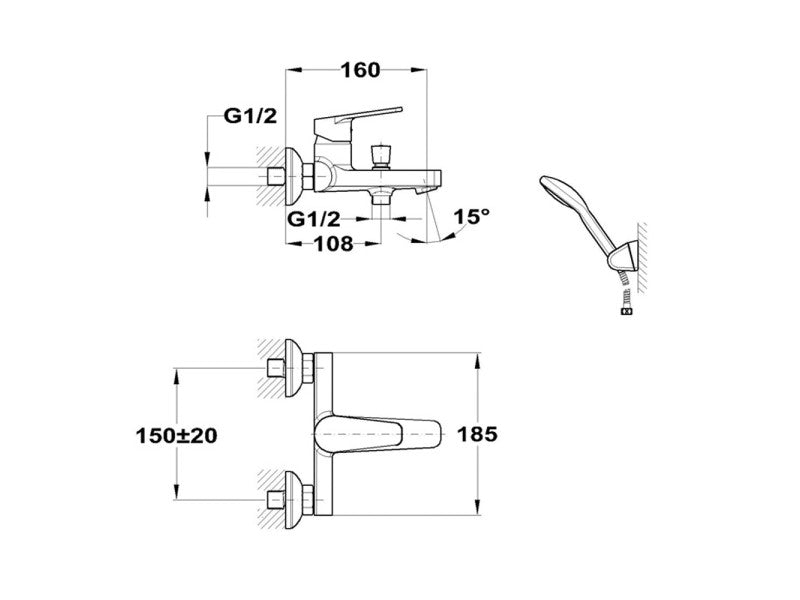 • Fali zuhanytartóval