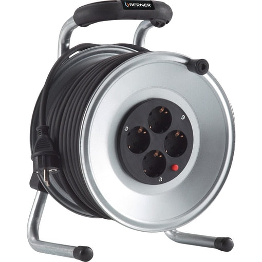 Berner Acéllemez kábeldob, IP20, Schuko aljzatrendszer