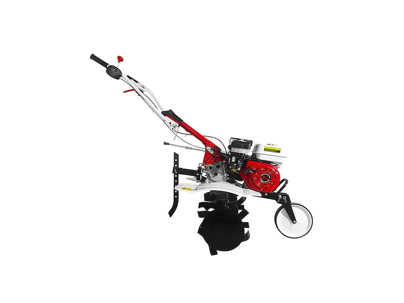 Benzinmotoros, 7 LE és 80 cm munkaszélességű változat, átlagos területhez, háztáji és kerti talajlazítási munkákhoz.