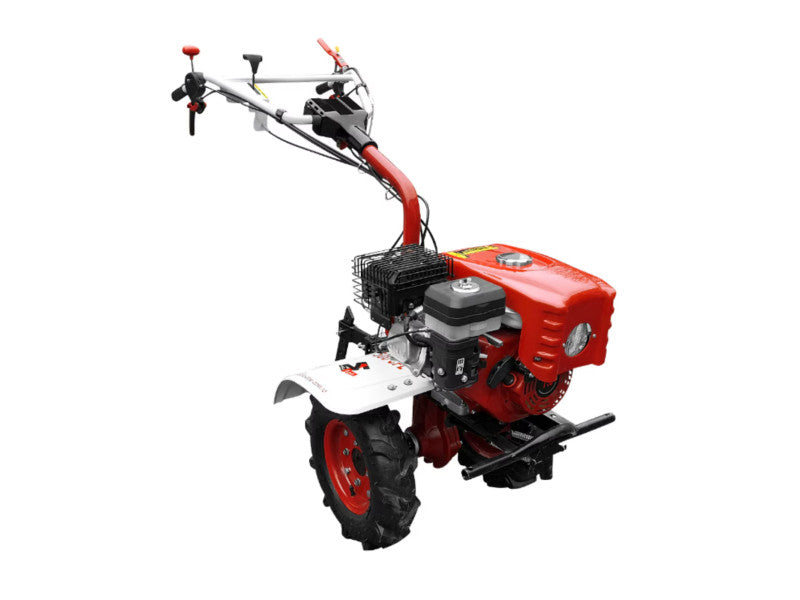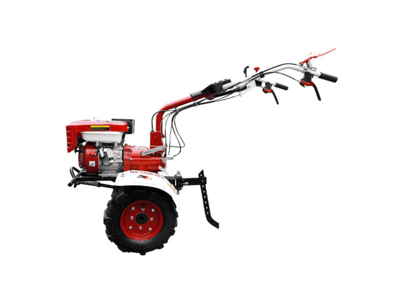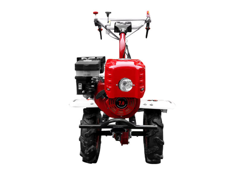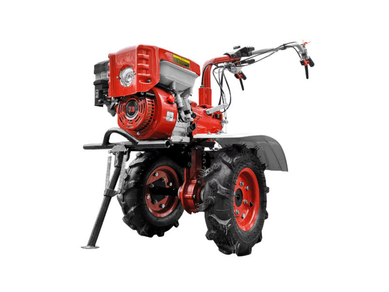 400 mm (4.00 - 8) átmérőjű, abroncsos traktorkerekek és első kitámasztó a stabilitás érdekében.