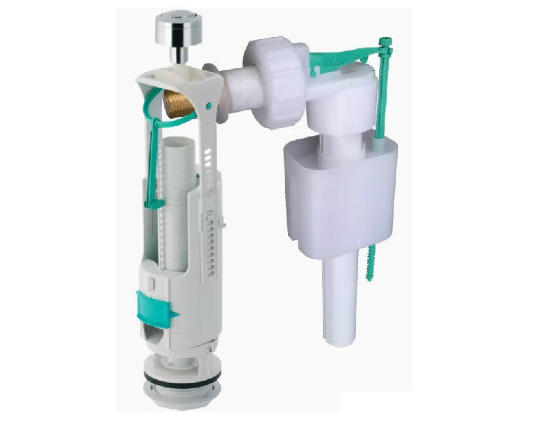 Geberit öblítőgarnitúra kerámiatartályhoz 3/8", kétmennyiséges öblítéshez. Fényes króm nyomógomb.