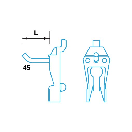 - Műanyag talp 45°-ban álló fém kampóvéggel