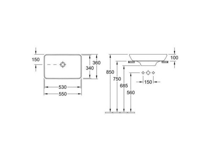 VILLEROY & BOCH VENTICELLO SZÖGLETES MOSDÓ, CSAPLYUKFURAT NÉLKÜL, TÚLFOLYÓVAL, 55X36CM