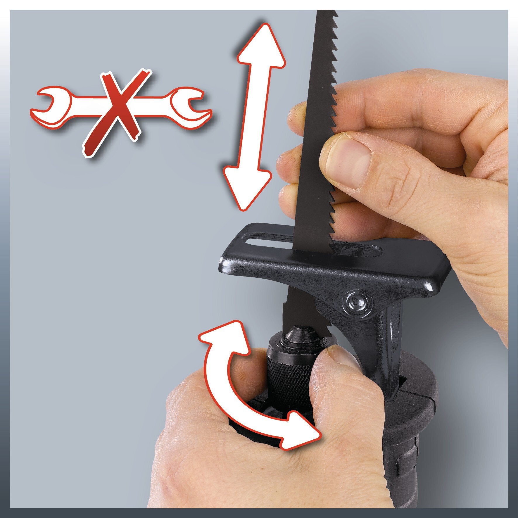- Szerszám nélkül állítható fűrésztalp az optimális fűrészlap használathoz