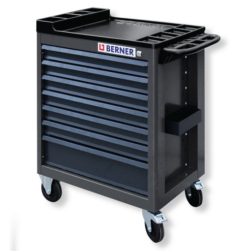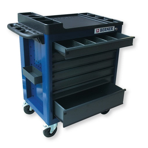 2 fékezhető önbeálló kerék Biztonsági állvány Stabil fogantyú a toláshoz, hullámos gumifelülettel Minden kerék használatra készre fel van szerelve - 10 válaszfal a fiókrekeszek kialakításához