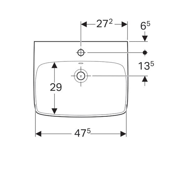 GEBERIT SELNOVA SQUARE MOSDÓ, 55 CM X 17 CM X 44 CM, CSAPLYUK KÖZÉPEN, TÚLFOLYÓ LÁTHATÓ