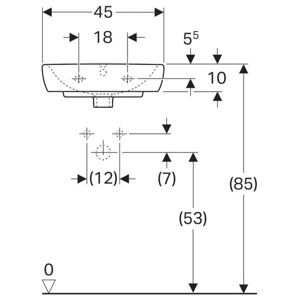 Geberit Selnova Square kézmosó: B=45cm, Fehér, középső csapfurat, látható túlfolyó, 500.322.01.1