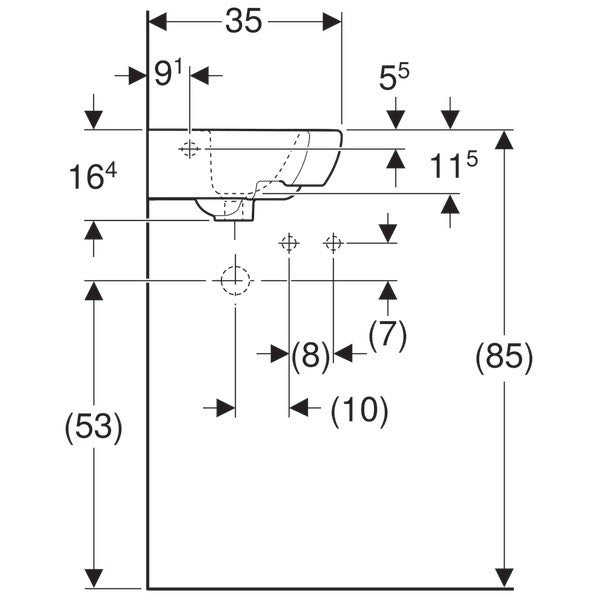 GEBERIT SELNOVA SAROK KÉZMOSÓ, 41.4 CM X 16.4 CM X 41.2 CM, CSAPLYUK KÖZÉPEN, TÚLFOLYÓVAL
