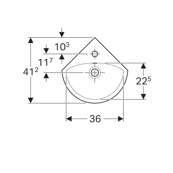 Geberit Selnova sarok kézmosó, fehér, középső csapfurat, látható túlfolyó, 500.326.01.1
