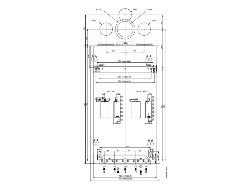 Füstgázcsatlakozás: 60/100 mm, 80/80 mm, 80/125 mm