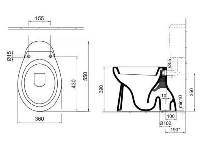 - Mélyöblítésű, alsó kifolyású WC-csésze