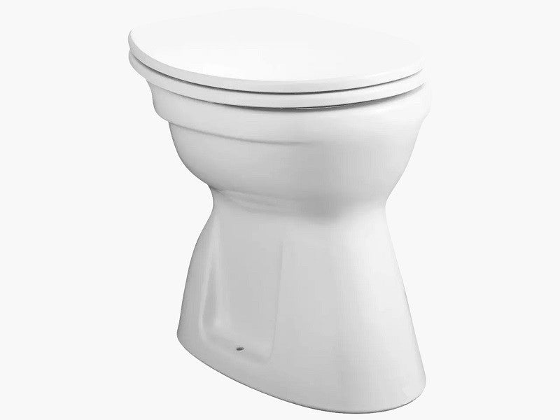 Laposöblítésű, alsó kifolyású WC-csésze, padlóra csavarozással szerelhető.