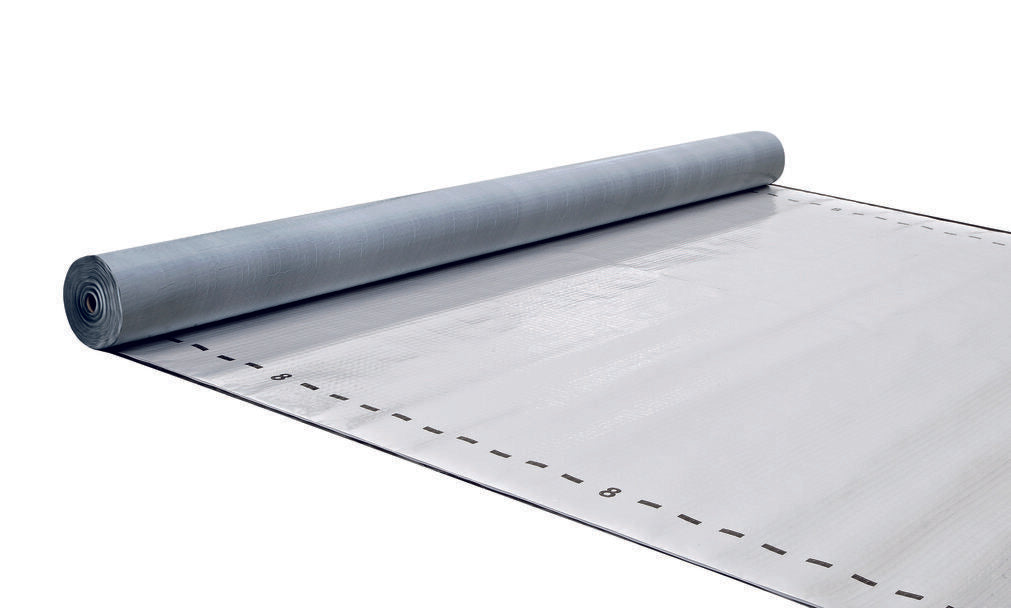 Öntapadó SBS-modifikált (elasztomer) bitumenes párazáró lemez, felső felületén háló erősítéssel ellátott alumínium fólia kasírozással és 8 cm széles átfedősávval, alsó felületén lehúzható fóliával védett öntapadó bitumennel.