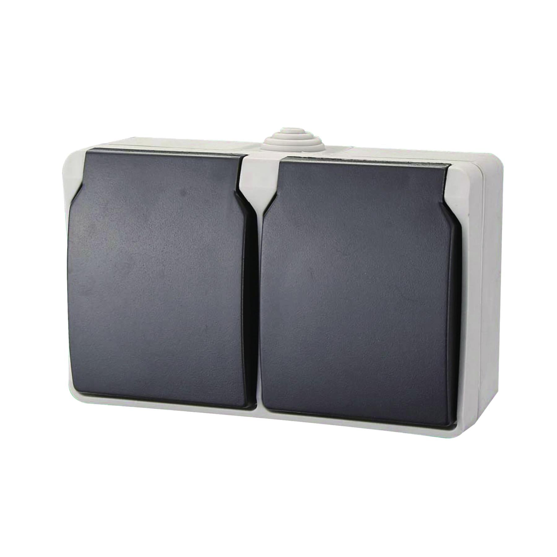 AQUATOP 9872H falon kívüli dugalj, 2 db aljzat, 16 A, IP54, szürke