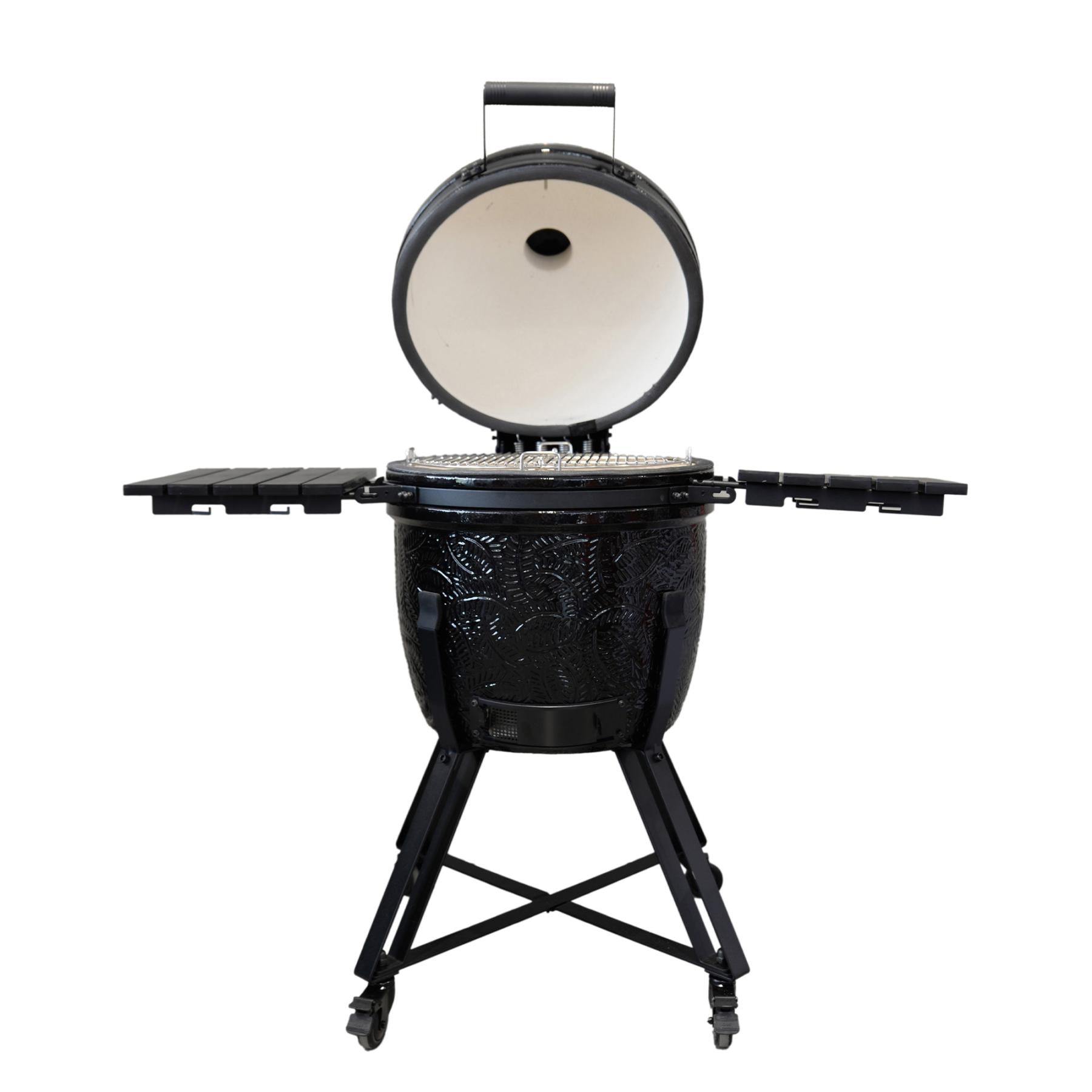 Ez a kamado grill teljes egészében mullit alapú kerámiából készült, amely rendkívül kopásálló és erős, emellett kiváló hőszigetelő tulajdonságokkal bír. A belső hőt hosszú időn keresztül képes megőrizni, így ideális a lassú sütéshez, grillezéshez és füstöléshez. Az extra jó záródásért a rugalmas, tartós tömítés felel, amely légmentesen zárja le a fedelet, így bent tartja a hőt, a füstöt és az aromákat. A fedélben található öntött alumíniumból készült szellőzőnyílás segítségével precízen szabályozható a levegőellátás.