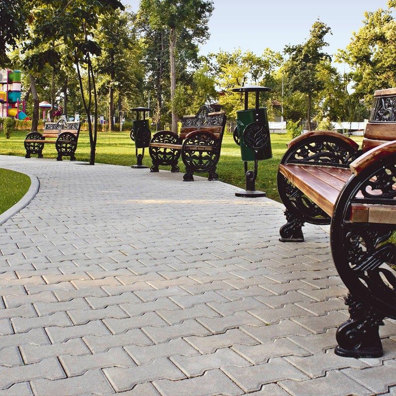 Nagy terhelhetőségű, klasszikus stílusú, dupla kötésű, szürke színű térkő, amely kiválóan alkalmas járdák, autóbejárók, parkolók és nagyobb forgalmú felületek burkolására magán- és közterületen egyaránt.