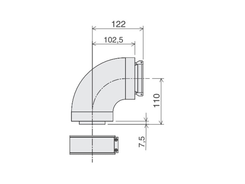 AKCIÓS BERETTA KONCENTRIKUS 90° KÖNYÖK IDOM, D80/125, ALU/ALU !!