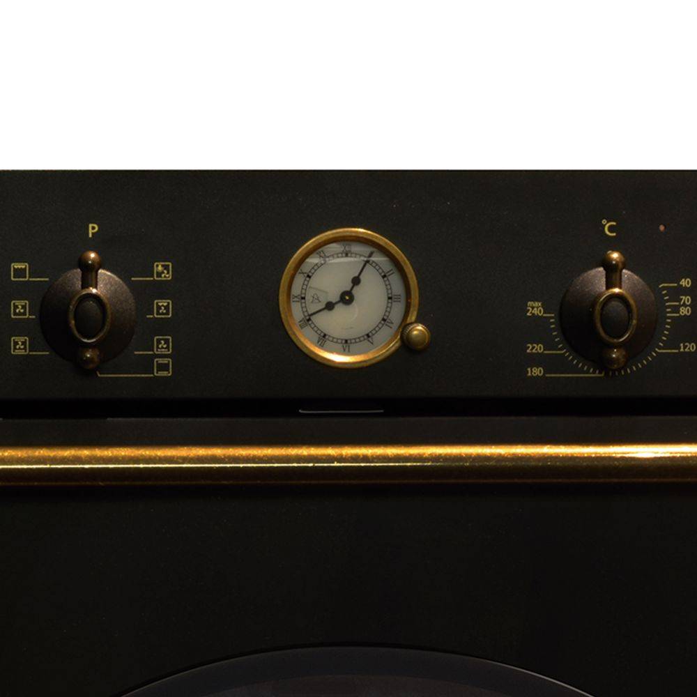 8 funkció, 60 literes sütőtér, analóg óra, 50 - 250 °C, dupla üvegezésű sütőajtó, 4 sütési szint, 1 db mély (5 cm), 1 db normál tepsi, fekete szín, AQUASMART SYSTEM