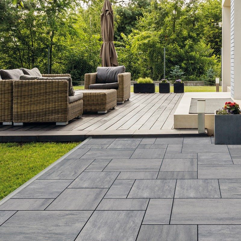 Grafit-ezüst színű, izgalmasan tagolt, letisztult formavilágú, élénk, egyedi hatású melírozott színekben elérhető, kombi térkő, a modern stílus kedvelőinek.