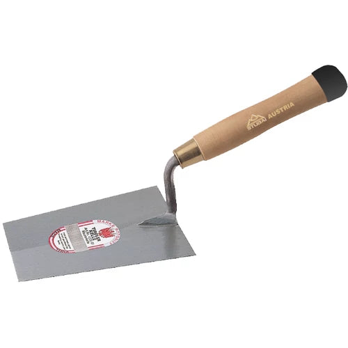 Csempéző kanál "Dél német" gumi nyéllel 160mm , Kovácsolt szár, csiszolt lap, edzett, polírozott, flexibilis, lesimított hegesztés, juharfa nyél 419101 gumi ütközővel