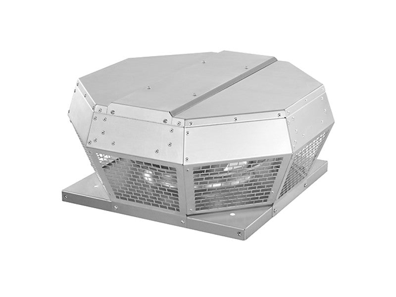 Ez a centrifugális tetőventilátor hátrafelé hajlított járókerékkel és vízszintes kimenettel rendelkezik. Időjárásálló alumínium AlMg3 házzal készül, valamint nagyon alacsony beépítési magassággal. A kimeneti oldal a berepülő madarak, illetéktelen érintkezés, szennyeződések és más idegen tárgyak ellen egy védőráccsal van felszerelve. Az alaplemez horganyzott acéllemezből készül, mélyen húzott beömlőnyílással és előre szerelt menetes csapokkal a DIN 24154 / EN 12 220 szabvány szerinti csőperemek és tartozékok csatlakoztatására.