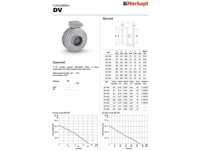 A DV fémházas csőventilátor a levegő elszívására és kifúvására alkalmas légcsatornákhoz. Kör keresztmetszetű légcsatornába építhetők. Számos alkalmazási lehetőség: irodák, éttermek, technikai és egyéb helyiségek szellőztetésére. Szerelőkonzollal. Maximum hőmérséklet: +40°C, minimum hőmérséklet: -20°C.