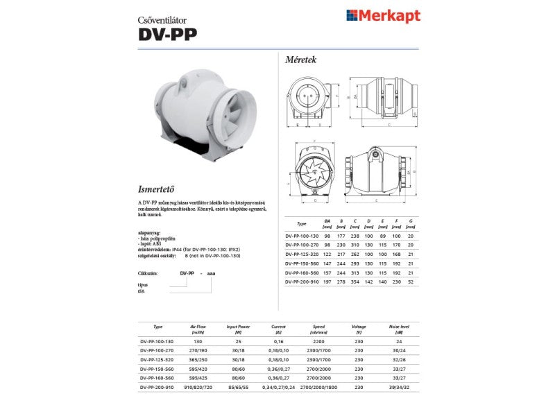 A DV-PP műanyag házas csőventilátor a levegő elszívására és kifúvására alkalmas, légcsatornákhoz.Számos alkalmazási lehetőség: fürdőszobába és más helyiségekbe is javasolt. Könnyű szerelés ott, ahol a hely korlátozott.