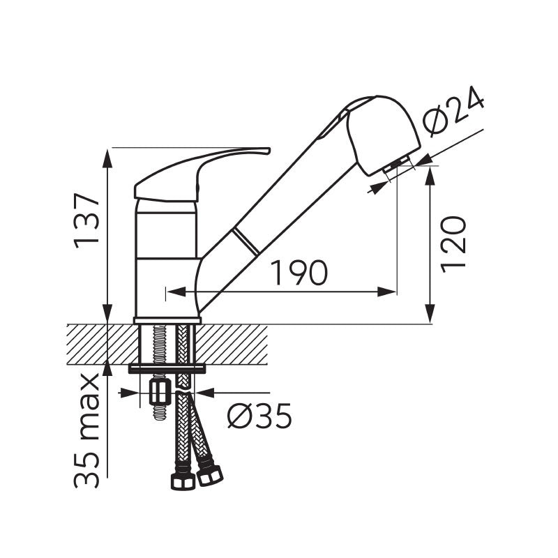 Ferro Vasto kihúzható, álló mosogatócsaptelep, króm
