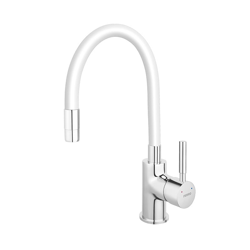 Ferro Zumba flexibilis, álló mosogatócsaptelep, fehér / króm