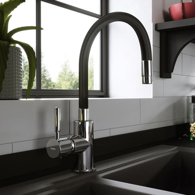 Ferro Zumba flexibilis, álló mosogatócsaptelep, fekete / króm