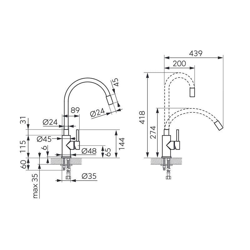 Ferro Zumba Inox flexibilis, álló mosogatócsaptelep, bézs