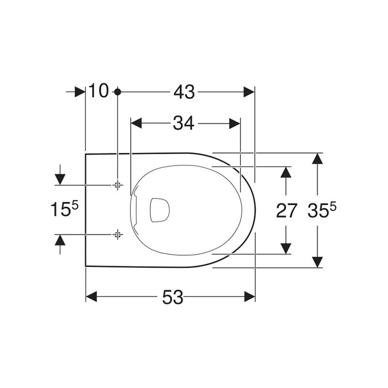 Geberit Selnova fali WC, mélyöblítésű, Rimfree, 53 cm
