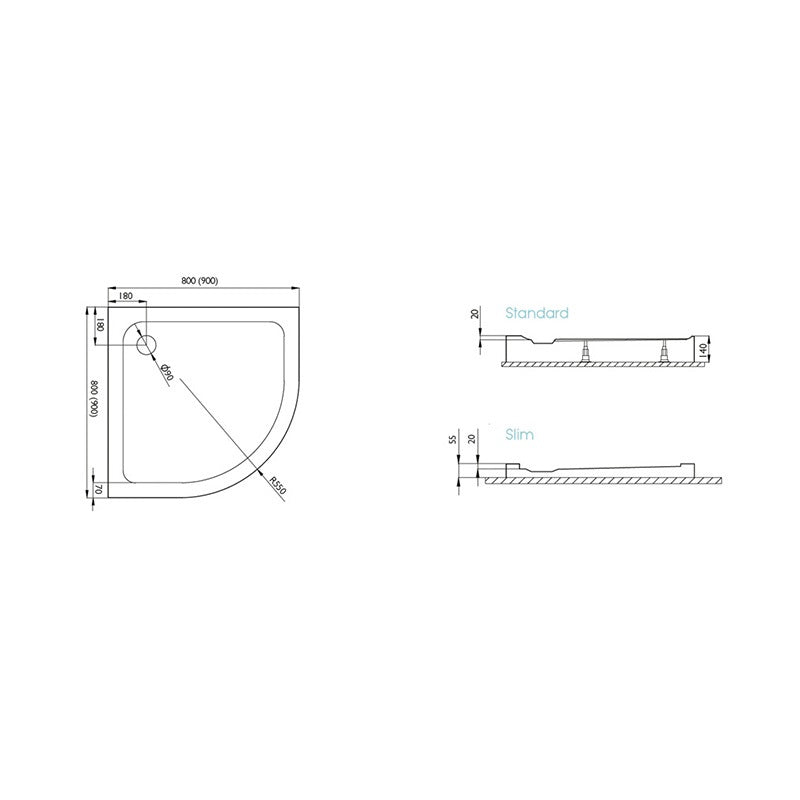 Elegáns íves zuhanytálcák szimmetrikus standard méretben, ajándék szifonnal minden modellhez!