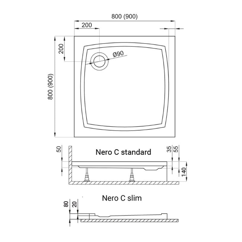 H2O Nero C 90x90 szögletes, akril zuhanytálca ajándék szifonnal