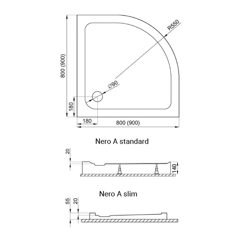H2O Nero A Slim 80x80 íves, akril zuhanytálca ajándék szifonnal