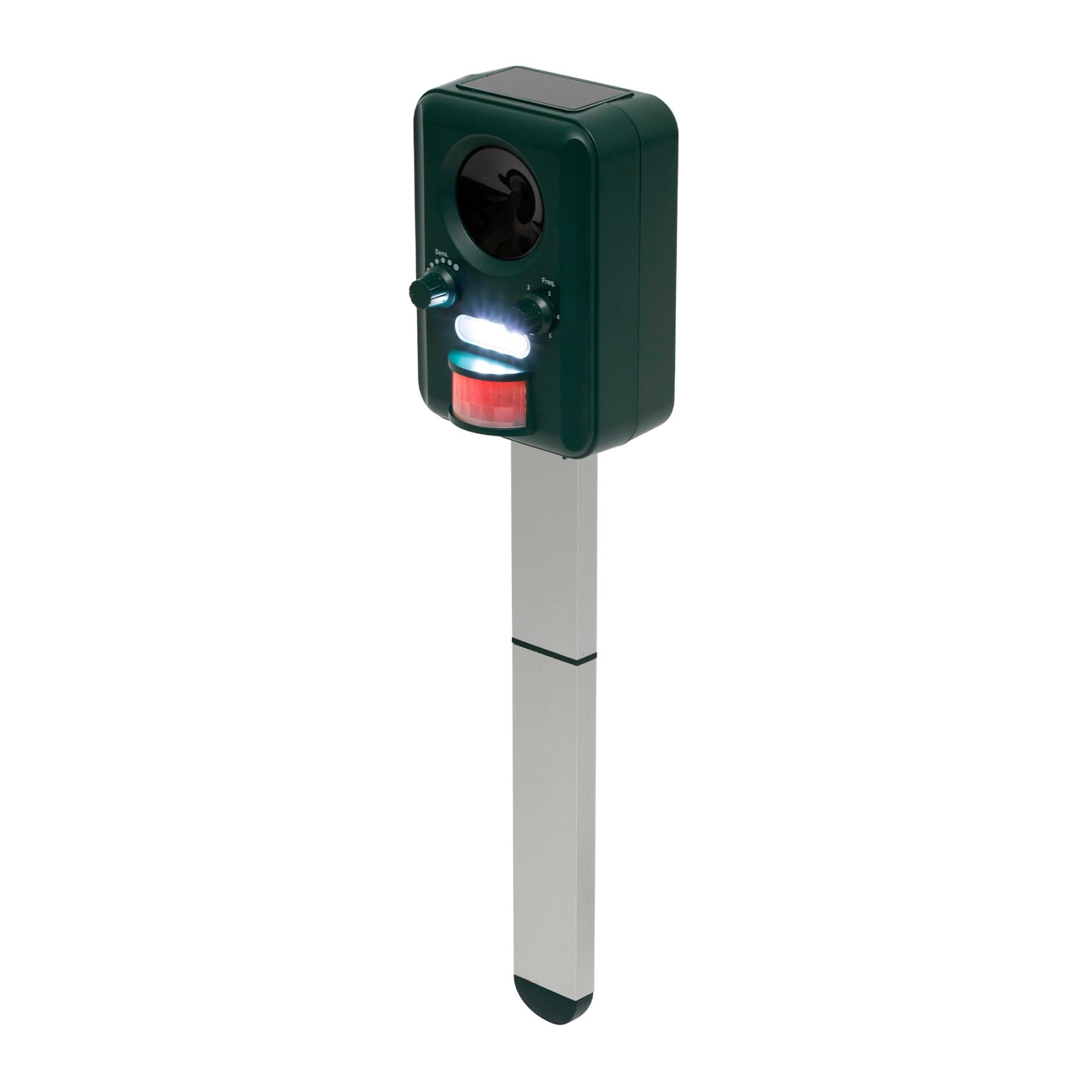 Ez az eszköz széles frekvenciatartományban (13,5 kHz – 23,5 kHz) működik, amely lehetővé teszi, hogy pontosan beállíthassa a kívánt állatfaj elleni védelmet. Rendelkezik PIR mozgásérzékelővel, amely akár 8 méteres távolságból is érzékeli a mozgást, így az állatriasztó csak szükség esetén aktiválódik, energiát takarítva meg. A beépített napelem és a tartozék USB töltőkábel biztosítja, hogy mindig rendelkezésre álljon a szükséges energia.