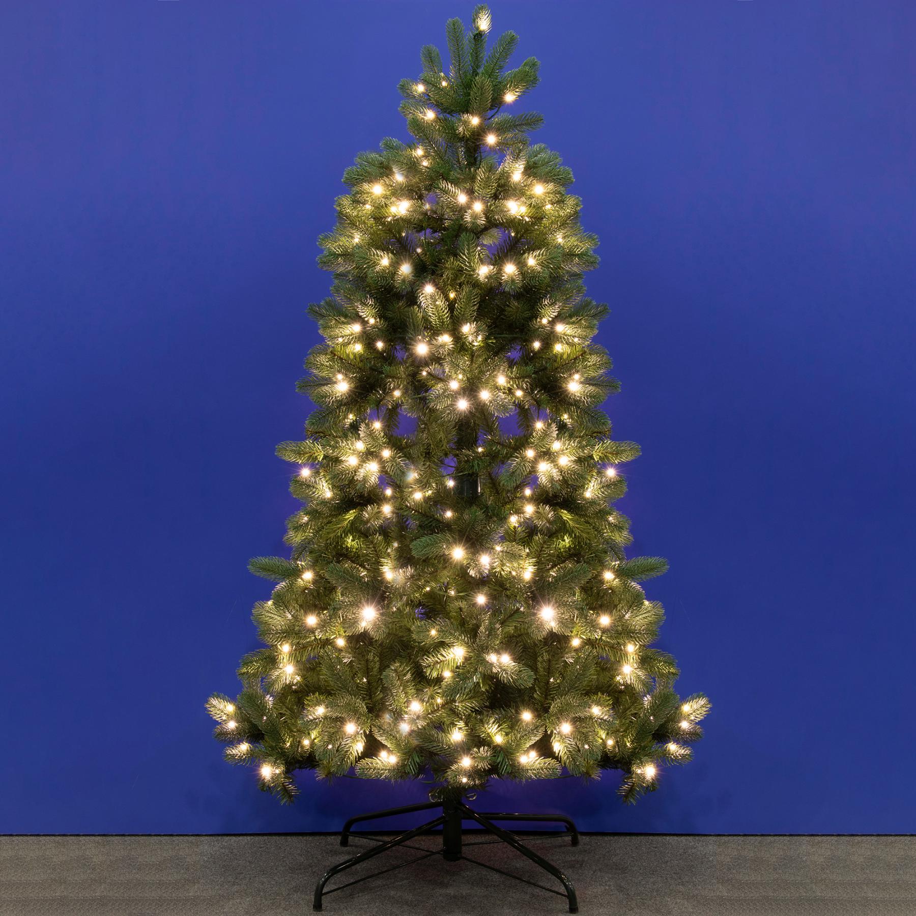 Ez a 210 cm magas, prémium minőségű műfenyő 500 db speciális, kétszínű LED-del van felszerelve, amelyek garantálják az ünnepi ragyogást, mind melegfehér, mind pedig színes fényben. A különleges talpkapcsoló segítségével négyféle funkció közül választhat: választhatja a melegfehér állófényű megvilágítást, a színes állófényű változatot, a felváltva melegfehér és színes fényt, vagy akár teljesen ki is kapcsolhatja a világítást. Ez a sokoldalúság lehetővé teszi, hogy a fa minden alkalomhoz és hangulathoz alkalmazkodjon.