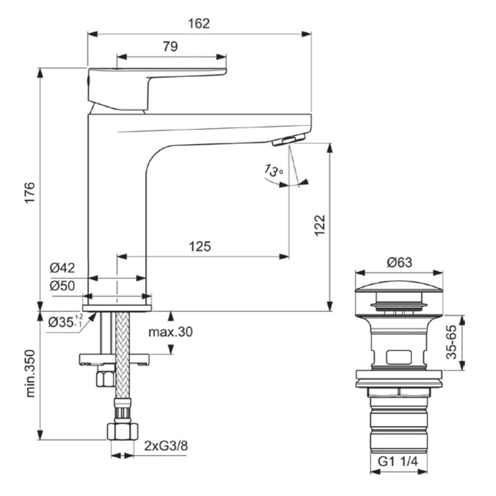 Ideal Standard Cerafine O mosdó csaptelep klikk-klakk leeresztővel fekete