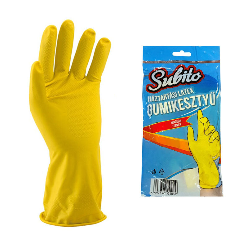 Háztartási gumikesztyű. Jó fogást biztosít, tapadásmentes belsővel és csúszásgátló külsővel. Mosogatáshoz, fürdőszobai használatra, ház körüli munkához ajánljuk.