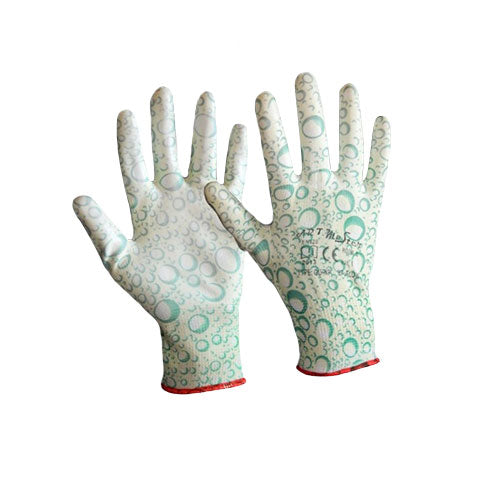 A PU bevonatos, mintás kesztyű egy kiváló minőségű kesztyű, amely számtalan munkafolyamathoz nyújthat hatékony segítséget. Jó minőségű, hatékony kesztyű, leginkább kerti munkálatokhoz ajánlott.