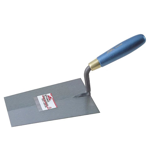 Kőműves kanál "Svájci-Olasz" 2K nyéllel 200mm , Kovácsolt szár, csiszolt lap, edzett, metálkék nyél