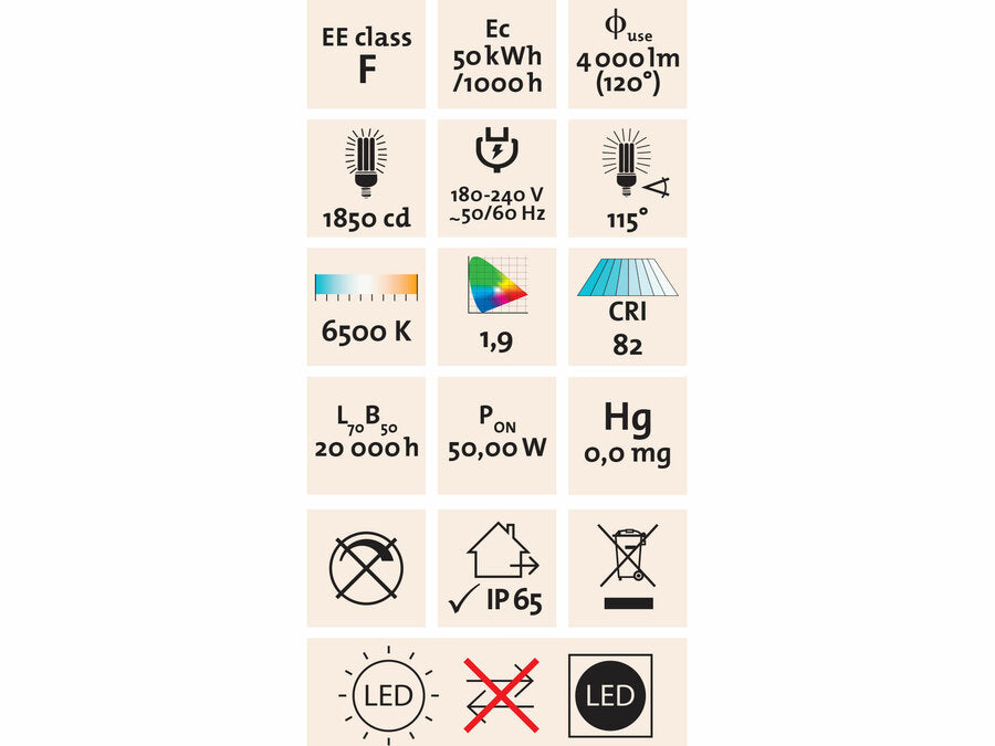 Ez a LED-es reflektor kellemes fehér fényforrás, amely minőségében megfelel a nappali fénynek. Alacsony energiafogyasztású, esőálló, porálló, széles szögben világít, dőlésszöge állítható, karbantartást nem igényel és ellenáll a környezeti hatásoknak. Hosszú élettartamának (több mint 30 000 óra) köszönhetően alkalmas épületek, kül- és munkaterületek vagy reklámfelületek hosszú távú megvilágítására.