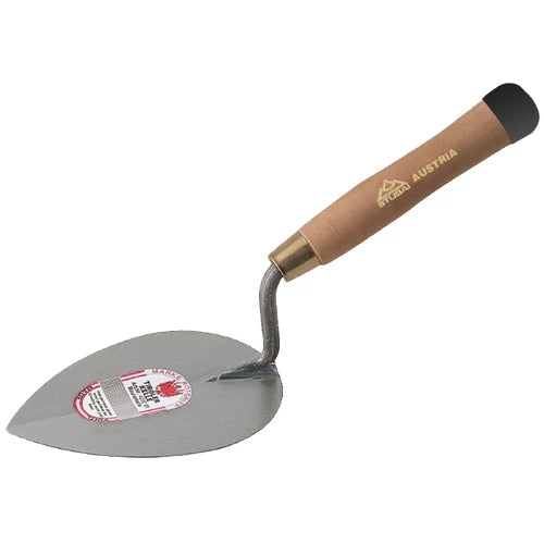 Csempéző kanál gumi nyéllel , Kovácsolt szár, csiszolt lap, edzett, polírozott, flexibilis, lesimított hegesztés, juharfa nyél 419101 gumi ütközővel