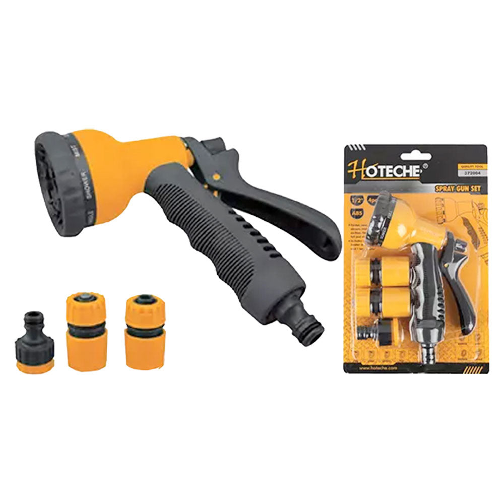Locsolópisztoly műanyag 8 funkciós szórófejjel+csatlakozók 4 részes Hoteche