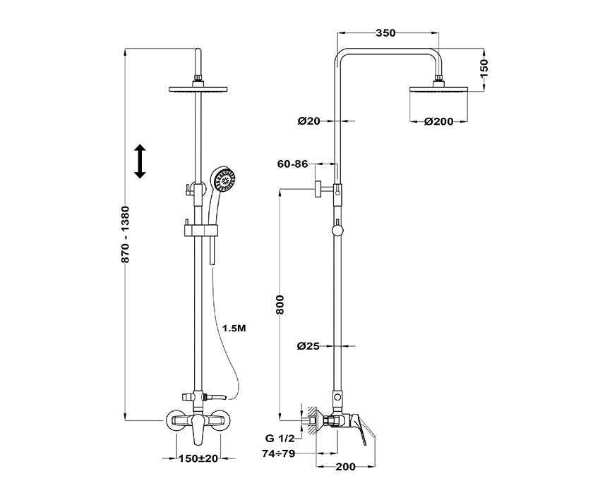 - Automata zuhanyváltó (alaphelyzetben a kézizuhany, váltáskor a fejzuhany irányába áramlik a víz)