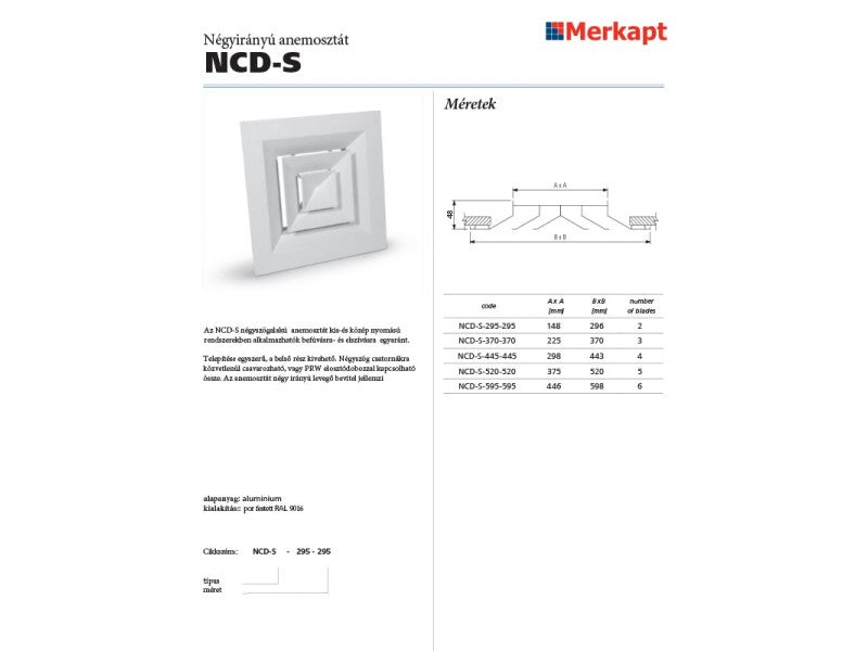 ALNOR NÉGYIRÁNYÚ ANEMOSZTÁT, MENYEZETI, NÉGYSZÖGALAKÚ, 295-295