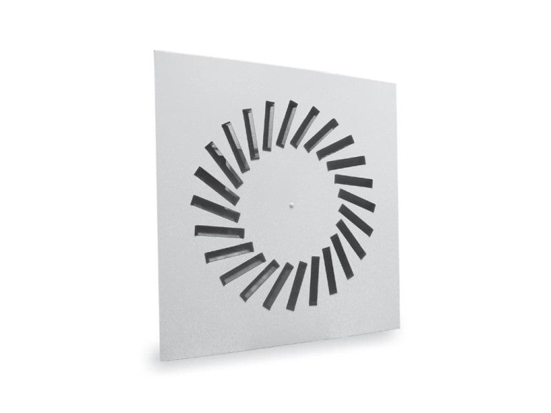 A perdületes mennyezeti frontlap kis- és középnyomású rendszerekben alkalmazható befúvásra, elszívásra egyaránt. A befújt levegő keveredik a belső tér levegőjével. A perdületet az örvénylapátok biztosítják, melyek száma 8-48 közötti lehet. Az egyenletes légáram érdekében PRW csatlakozó dobozzal alkalmazzák. Anyag: horganyzott acéllemez.
