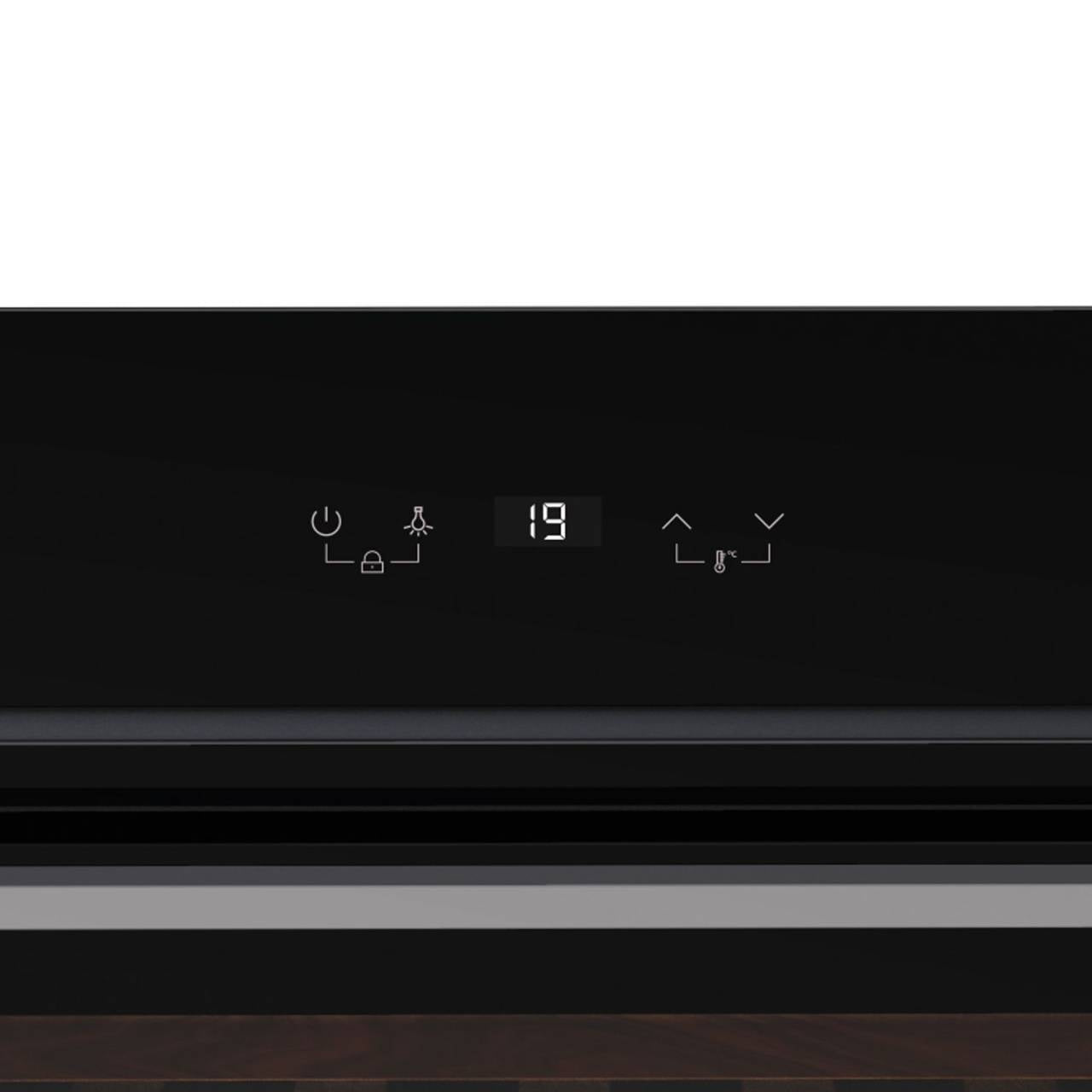 24 palack tárolása 3 db fa polcon, elektronikus érintővezérlés, 1 hűtési zóna, fekete üveg előlap, lágyan záródó ajtó, 43 dB(A) zajszint, LED világítás